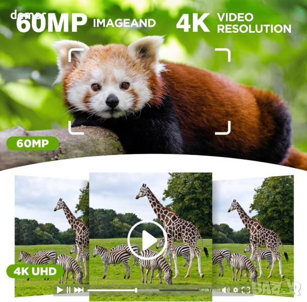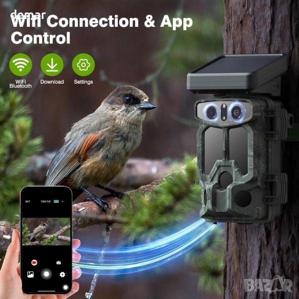 VOOPEAK 4K 30FPS 60MP камера за диви животни, с 5000mAh соларен панел