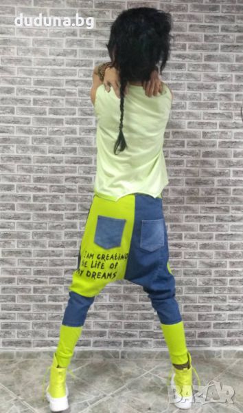 Див дамски сет, дънки потури и тениска с деним в електриково!