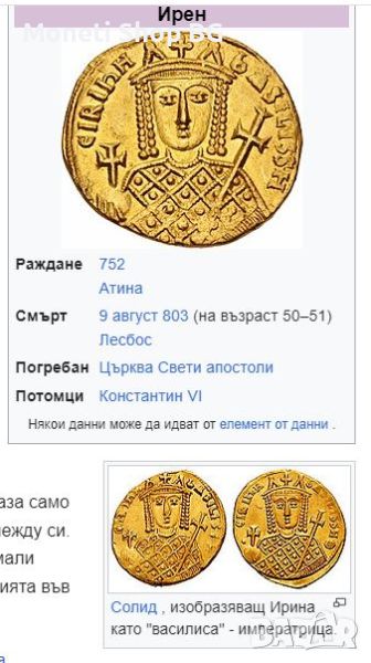 Ирина Атинска 752 г. в Атина – 9 август 803 г. в изгнание на остров Лесбос ) тогава е била в брачни и майчински отношения с императорите на Византийската империя на Източната Римска империя , но тя се е справила с управлението на империята, така че би било възможно да я считаме за императрица.