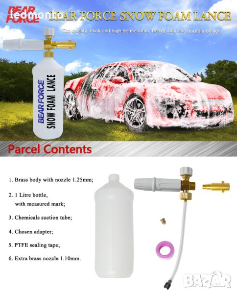 Предлагаме ви висококачествено професионално регулируемо оръдие за пяна, идеално за миене на автомобили и други повърхности. Този пенобразувател е проектиран за създаване на гъста, плътна пяна, която ефективно премахва замърсяванията и осигурява дълбоко почистване.