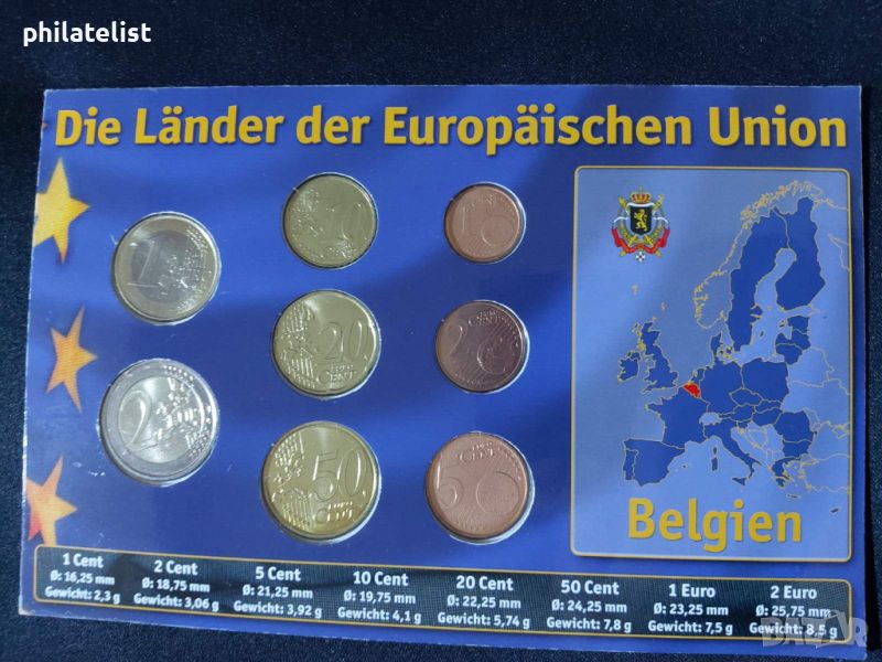 Белгия 1999-2008- Евро сет - комплектна серия от 1 цент до 2 евро → Обява 46552590