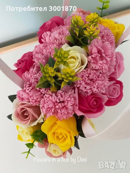 Аранжирани сапунени рози в кутии букет в кутия подарък цветя → Обява 46553213