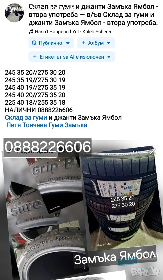 за повече информация и снимки Склад за Гуми и джанти Замъка Ямбол Лице за контакт Петя Тончева 0888 226606