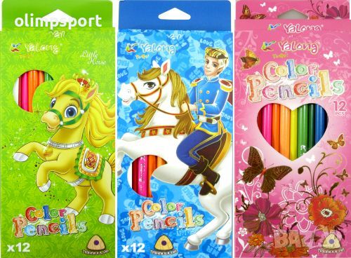 Висококачествени цветни моливи 12 цвята, дълги.Триъгълна форма за удобен захват. Отлична покривна способност и наситеност на цветовете при оцветяване и рисуване.
