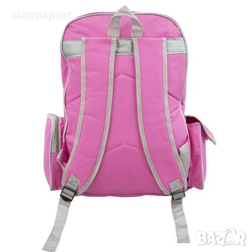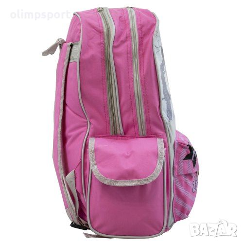 Ученическа раница TOP MODELS, 44х34x21 см. Разполага с две основни отделения с цип, два странични джоба, един лицев джоб с цип и удобни презрамки. Материал - текстил, полиестер с PVC промазка. Раниците са с пришит накриво хастар между двете основни отделения. Без забележки по външния вид.