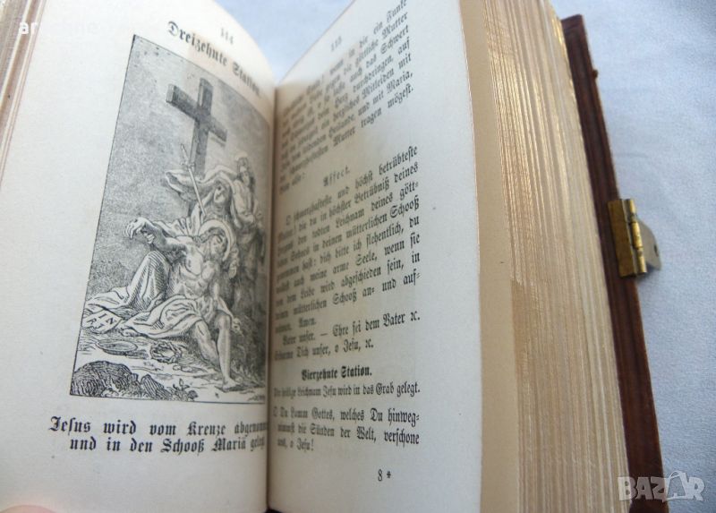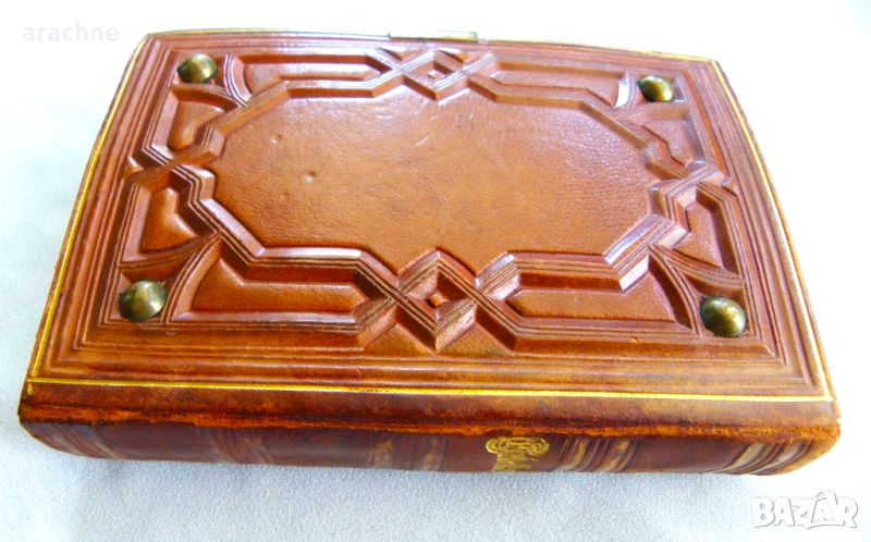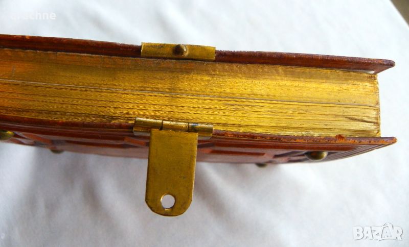 слонова кост, релефно оформяне на кожата на подвързията, пурпурно кадифе, метален обков, позлата на ръбовете на страниците