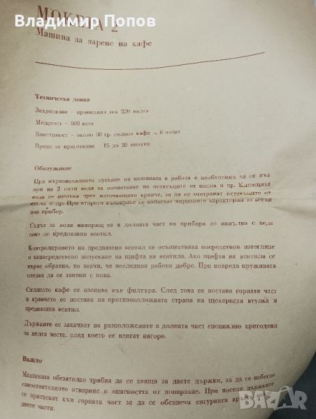 Машина за варене на кафе Мокета 2.Работи нормално, пускана е само за тест и само с вода.Произведена в ГДР. Made in DDR.