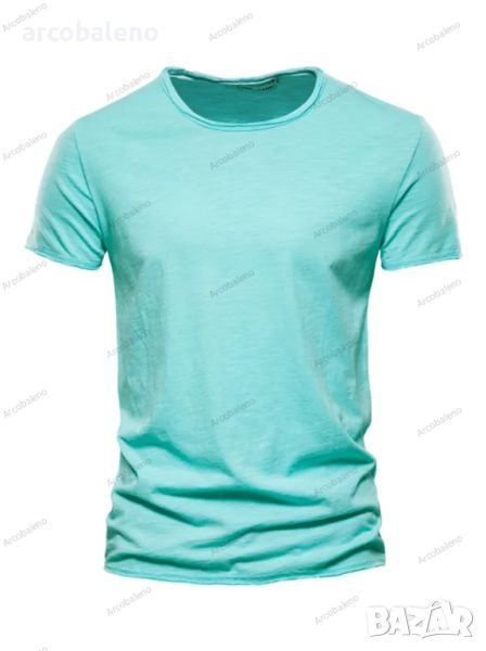 Мъжка едноцветна, памучна тениска с кръгло деколте и къс ръкав, 10цвята