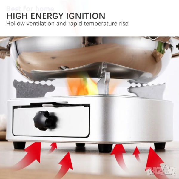 Вентилационните отвори на дъното на печката са стратегически проектирани, за да улеснят лесното отстраняване на пепелта и да подобрят ефективността на горенето. Тази функция не само допринася за по-чисто изгаряне, но също така гарантира, че печката остава стабилна дори при ветровити условия. Независимо дали готвите обилно ястие или варите вода за следващото си приключение на открито, ветроустойчивите възможности на тази печка гарантират постоянна производителност.
