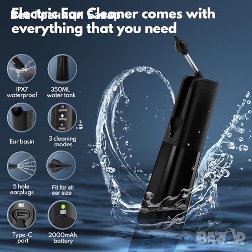 Комплект за цялостно почистване: 280ml воден резервоар, 3 режима на почистване и меки накрайници за предотвратяване на ушни инфекции.