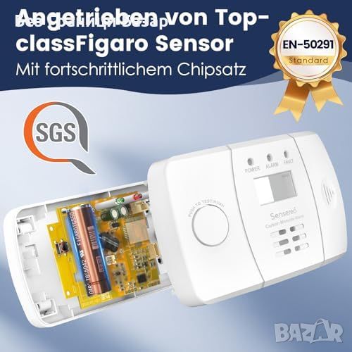 Нова Аларма за въглероден окис CO детектор Sensereo - LED/LCD дисплей, защита