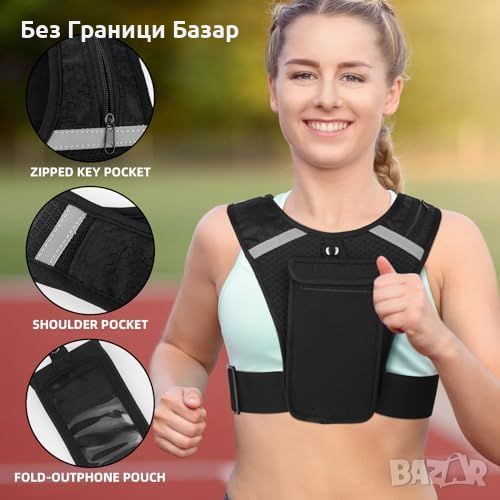 Нов Регулируем рефлекторен елек с джоб за телефон ключове за тичане спорт