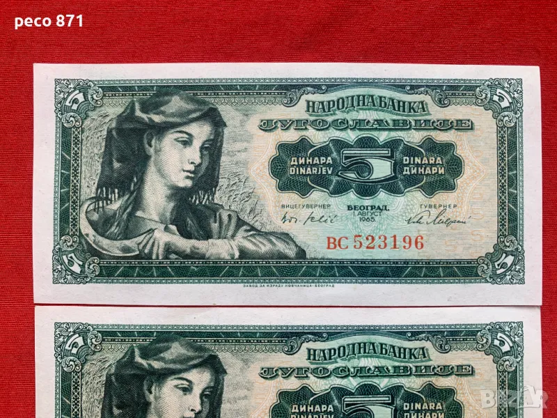 5 динара 1965 г.Югославия две банкноти → Обява 46566507