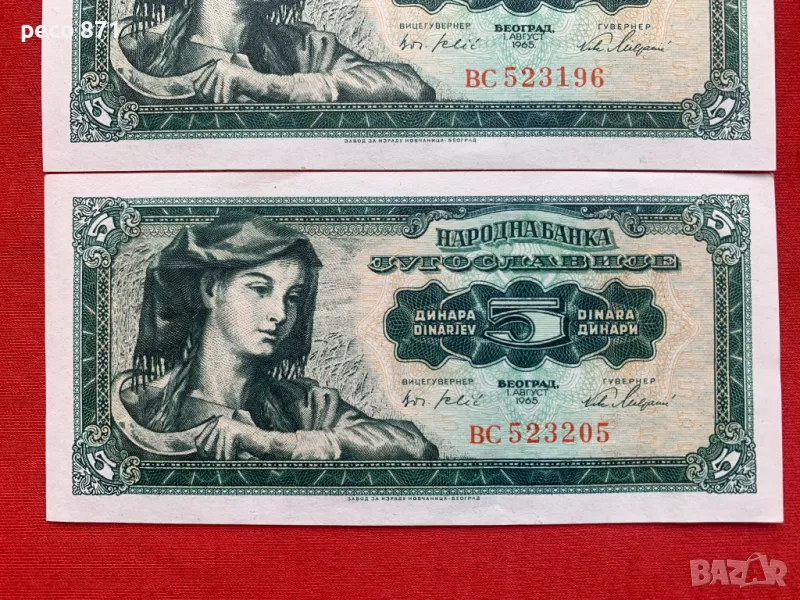 5 динара 1965 г.Югославия две банкноти, снимка 1 - Нумизматика и бонистика - 46566507 5 динара 1965 г.Югославия две банкноти, снимка 2 - Нумизматика и бонистика - 46566507 5 динара 1965 г.Югославия две банкноти, снимка 3 - Нумизматика и бонистика - 46566507 5 динара 1965 г.Югославия две банкноти, снимка 4 - Нумизматика и бонистика - 46566507 5 динара 1965 г.Югославия две банкноти, снимка 5 - Нумизматика и бонистика - 46566507 5 динара 1965 г.Югославия две банкноти, снимка 6 - Нумизматика и бонистика - 46566507 1/6