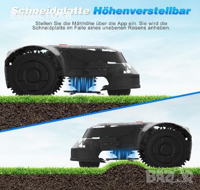 Регулируема режеща плоча и откриване на точката на счупване. С помощта на приложението можете лесно да регулирате височината на режещата плоча. Косачката-робот автоматично регулира режещата си глава, когато има препятствия, за да избегне повреда на остриетата. Ако ограничителният кабел се скъса, можете лесно да върнете робота в докинг станцията и да намерите скъсването с помощта на приложението. Лесно го закрепете с кабелни конектори за безпроблемна грижа за моравата.