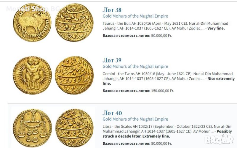 Зодиакално съзвездие на Варак/Меша (Овен - Овен), година на царуване 16 (ноември 1620 - октомври 1621 ), Агра. Овен, глава надясно, тичащ наляво с лъчезарно слънце отзад, / Името на Джахангир, син на Акбар, монетен двор и дата по Хиджра с указание за година 1.