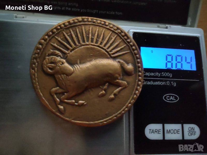 Този екземпляр обаче е направен от медна сплав и е с тегло 88,04гр.