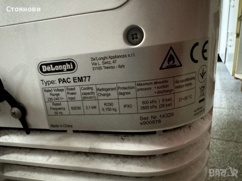 DeLonghi PAC EM77 Мобилен климатик, до 70 м3, 3 скорости, Таймер, Бял → Обява 46567843