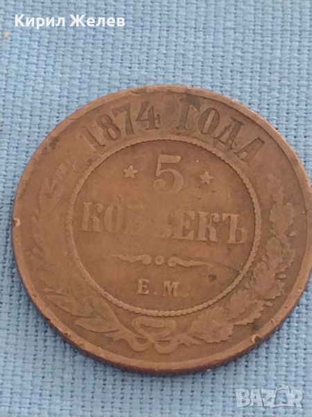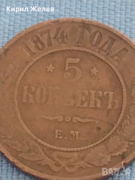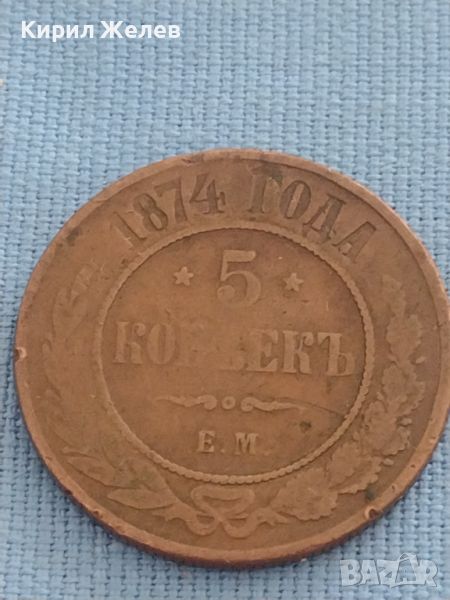 Рядка медна монета 5 копейки 1874г. Русия уникат за КОЛЕКЦИОНЕРИ 47202