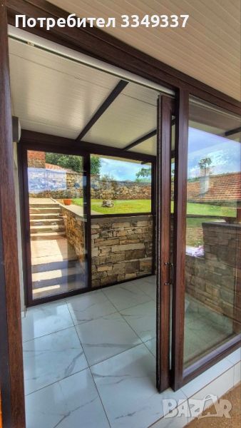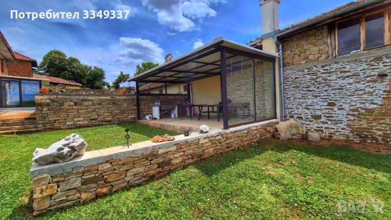 Нов навес предназначен за инструменти и домашни любимци, огромна лятна кухня изработена от метална конструкция и термо панел с уникална панорама, голяма врата и стилна ограда изработени от ковано желязо, големи каменни довари. Мястото на имота е 600 кв. м , застроена част 95 кв.м.