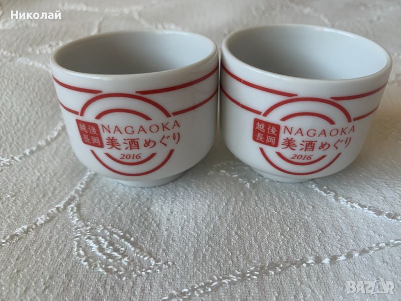 Чашки за саке Kikichoko Janome , комплект 2 бр., порцеланови, оригинални японски, Nagaoka 2016 → Обява 46569630