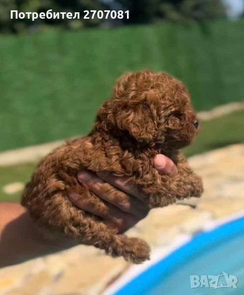 той пуделчета, които нямат никаква смесица с други породи, чист цвят, а родителите може да видите на снимките. Разполагаме с две момичета и две момчета. Едното момиче вече е капарирано. Кученцата се дават с две или три ваксини, с една ваксина НЕ ДАВАМЕ КУЧЕ. Те са вътрешно обезпаразитени с Прококс. Храним ги с хубава храна и се грижим отлично за тях. Преди да вземете кученцето ние правим тройния тест - Корона, Паровироза и Корона. След закупуването му, ние сме винаги на разположение за въпроси. Ежегодно организираме пуделски срещи на които обменяме опит и превръщаме срещата в истинска забава. С кученцето вървят и инструкции за отглеждането му. Нашите кучета са гледани по най-добрият начин, ваксинирани, обгрижвани. Даваме им имуностимуланти Ветомуун. Ние не разчитаме, че ще се привържете към кучето и ще забравите, че сте искали ТОЙ, а той е станал/а МИНИ, или искате МИНИ, а той е станал среден. Когато си купите от нас куче, то е такова каквото сте искали и очаквали. Може да предоставим и препоръки от наши клиенти. Нашите мъничета не се гледат в клетки, а в специални кошарки, водата, пелените се сменят през два часа! Стаите поддържат температура, която е здравословна за бебетата и майката, разполагаме с инфрачервени лампи, климатик и подово отопление. Бащата е висок е 26 см и тежи 3.5 кг., внос от Русия, а майката е висока 27 см и тежи 4 кг. Ние отглеждаме пудели от 15 години и знаем роднините на кучето от три поколения! Не правим смесеци, нито с различни породи, нито смесваме ТОЙ с МИНИ или обратното. Кученцата ще могат да отидат при новите семейства през юни. Ако решите да вземете куче от нас капарирате го, ние даваме ДОГОВОР, който пази Вашите права, нашити, както и правата на кученцето.