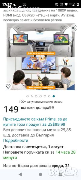3S Автоматично зареждане на дискове и най-нова памет: Нашият детски DVD плейър за кола разполага с дизайн на диск от всмукателен тип, той автоматично ще засмуче диска и ще се зареди за секунди, лесно за възрастни на предната седалка или деца на задната седалка да променят думите DVD плейърът на телевизора за кола също има вградена най-нова функция за памет, което прави гледането по-удобно чрез рестартиране от точката на прекъсване всеки път.HDMI вход и телевизионна синхронизация, плейър: DVD плейър за облегалка за глава на кола Desobry с функция за HDMI вход ви позволява да синхронизирате до 1080P видео от телефони, компютри, Raspberry Pi, Xbox или Kindle Fire и др. (Моля, потвърдете, че вашият телефон поддържа HDMI изход, преди да поръчате) А функцията му за AV вход/изход прави възможно синхронизирането на екрана с телевизора, за да видите по-големи изгледи чрез RCA кабел. Освен това можете също да възпроизвеждате различни видеоклипове едновременно или чрез включения AV кабел, за да синхронизирате два екрана.Широка съвместимост: Нашият DVD плейър за облегалка за глава за кола има широка съвместимост и може да възпроизвежда дискове без регион от CD, DVD, CD±R, DVD±R, DVD±RW, VCD до SVCD (но не и blue-ray DVD). USB/SD картата поддържа възпроизвеждане на MP3, WMA, VOB, AVI, DAT, MPEG4, MPG, JPG, JPEG (максимум до 128GB FAT32 и 1920*1080 пиксела). Забележка: Подходящ само за стандартни дискове с диаметър 4,7 инча.HD визия и регулируем екран: Преносимият DVD плейър Desobry 2022 предлага 1920 x 1080P възпроизвеждане на HD видео при 30 кадъра в секунда, за да защити очите на децата и да подобри изживяването при гледане. И благодарение на регулируемия ъгъл на екрана от 135°, децата могат да гледат видеоклипове под удобен ъгъл по всяко време, така че вратът им да не ги боли и да минимизират отразения отблясък, за да предпазят очите си.Лесен за инсталиране и стерео високоговорители: DVD плейърът за пътуване в кола се предлага с монтажна скоба, която ви позволява да инсталирате плейъра здраво на облегалката за глава и видеото няма да се разклати или падне отново. А вградените двойни долни високоговорители ще ви осигурят ясен и силен стерео звук. В сравнение с високоговорителите отзад или отпред, долните високоговорители ефективно намаляват звуковите смущения за пътниците отпред.