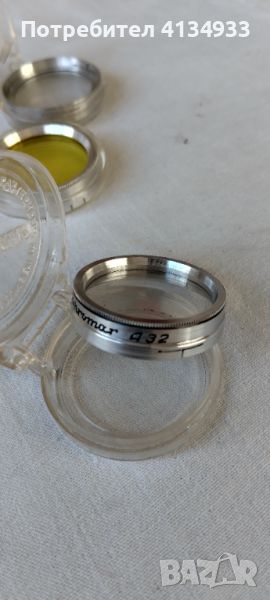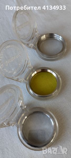 Стари филтри PANCHROMAR - комплект 3 броя! Два били и един жълт! Фи 32. В оригинални пластмасови кутии за съхранение. Без драскотини, перфектно запазени.