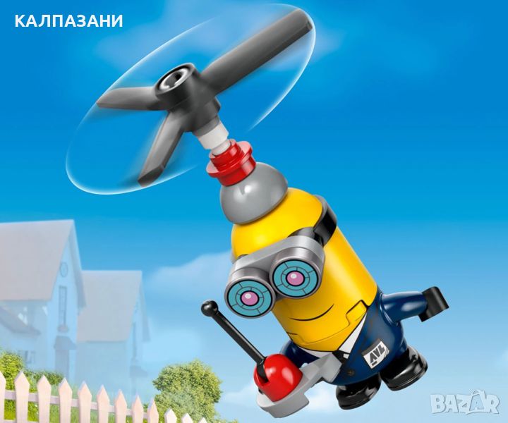 Развихрете се с веселите миньони! Мега миньонът Дейв държи лост на щанга в едната ръка и автомобилен двигател в другата. Мел рисува портрет – на банан! Миньонът монтьор Рон кара голямата кола банан, докато таен агент Тим от АЗЛ долита с перки на главата и дистанционно управление в ръката. Какво ли ще е следващото им забавление? Вие решавате.