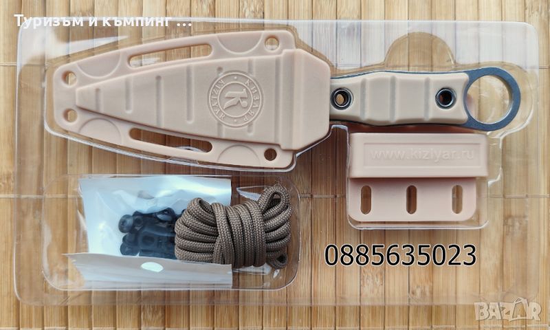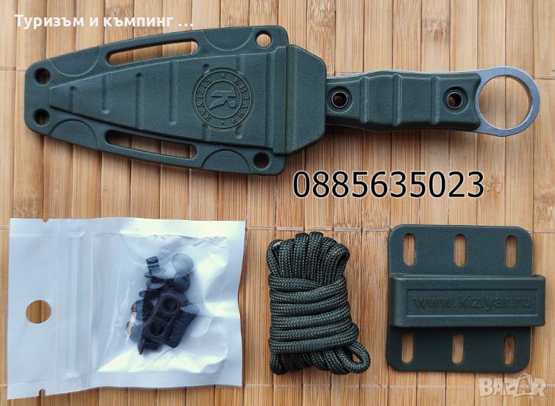 Комплекта включва паракорд, който може да се използва за закрепване на ножа към врата ви.