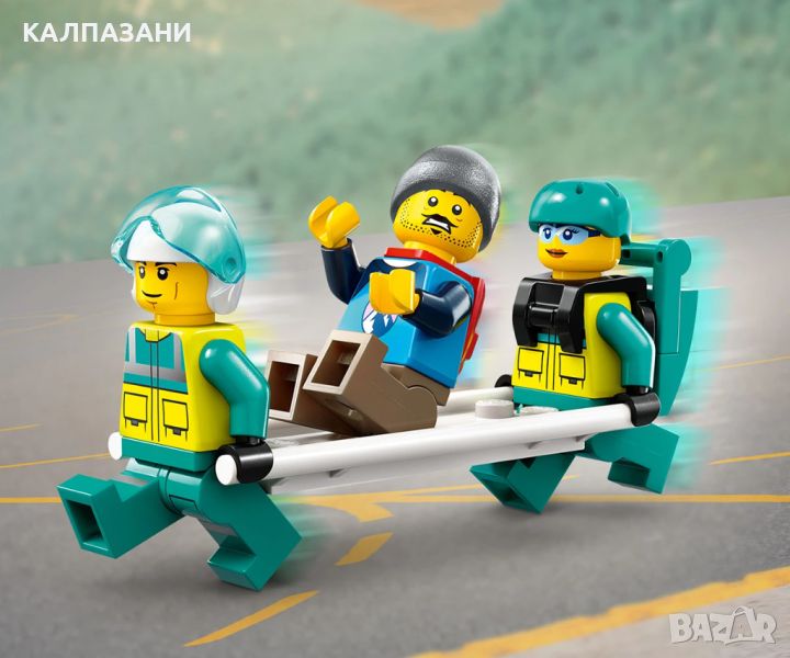 Очакват ви изпълнени с екшън приключения и въздушно спасяване с комплекта за игра LEGO® City, включващ страхотен хеликоптер с работеща лебедка, плюс 3 минифигури.