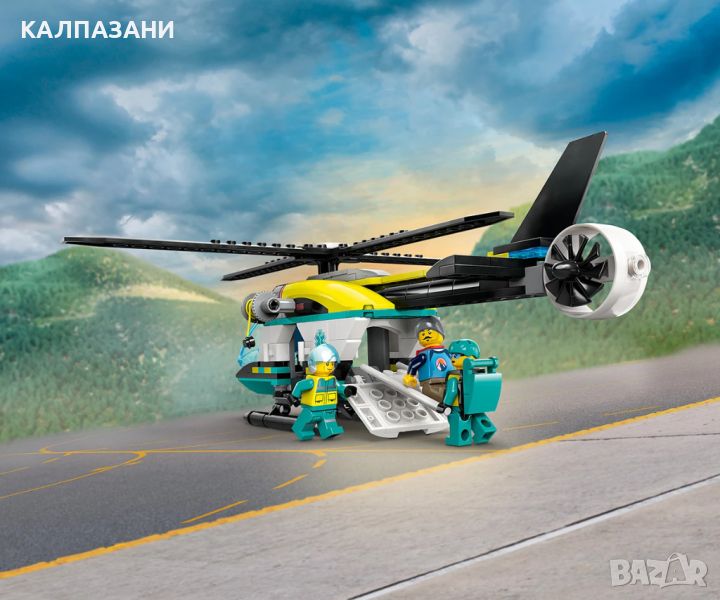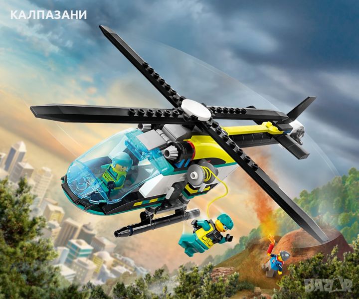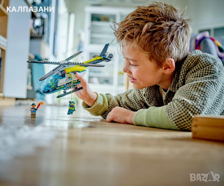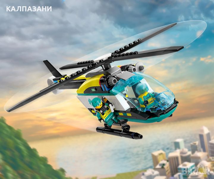 - Играчка хеликоптер за деца – очакват ви изпълнени с екшън приключения за спасяване от въздуха с комплекта LEGO® City Спасителен хеликоптер за спешни случаи за възраст над 6 години