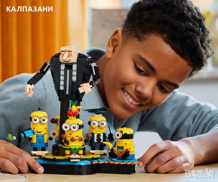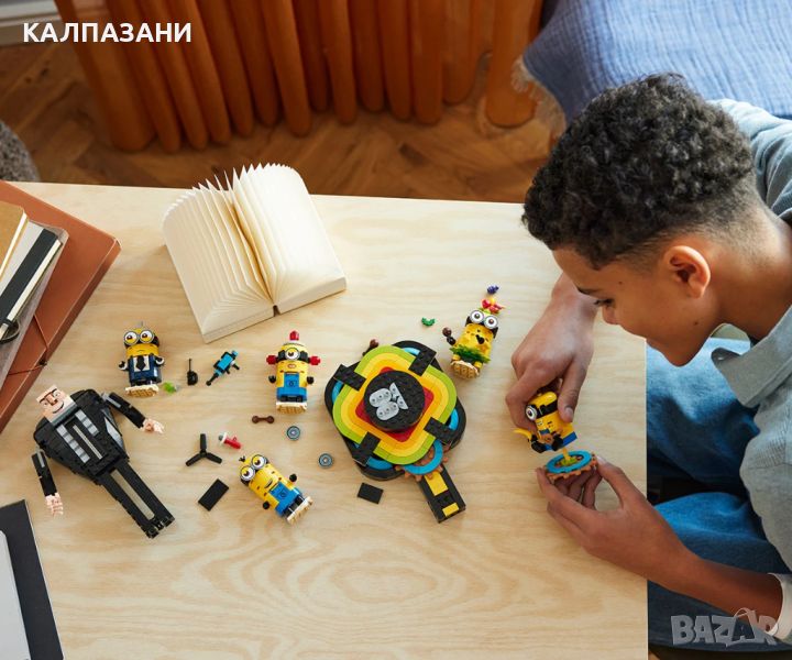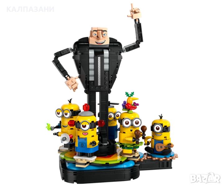 Феновете на Гру, играчки с миньони и филмови подаръци ще харесат танцуващите LEGO® Despicable Me 4 Гру и миньони от тухлички за игра и показване.