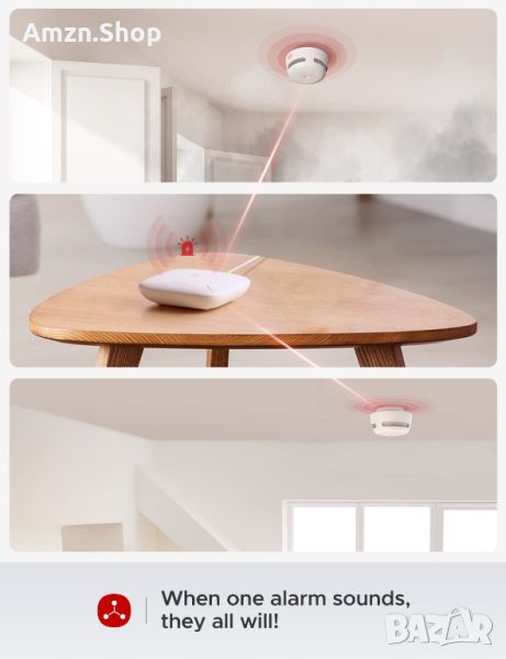 Знайте отвсякъде: Всеки път, когато бъде открит дим, ще получите насочено известие на телефона си; базовата станция и всяка аларма в системата ще прозвучат едновременно, така че всеки в дома ви да е наясно с аварийната ситуация