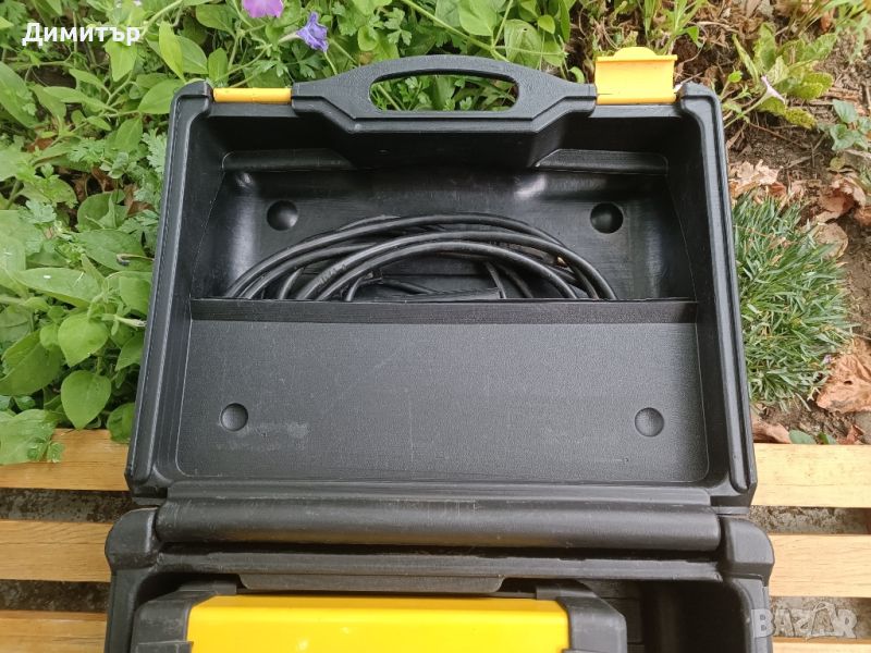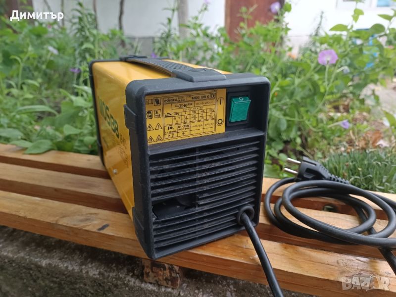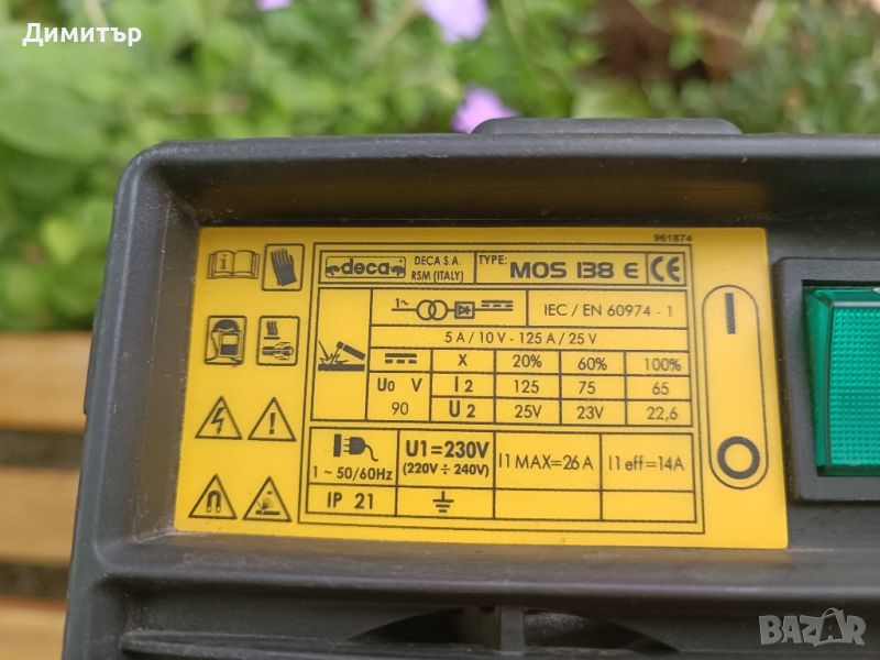 електрожен марка Deca Италия, в комплект с кабели и куфар. Тестван за работа, работи нормално. По машината не са правени ремонти или каквото и да било. Забележка са счупените 2 ребра от задната решетка. Работи добре с нормални електроди 2.5 мм, пали и стоманени, но по-трудно.