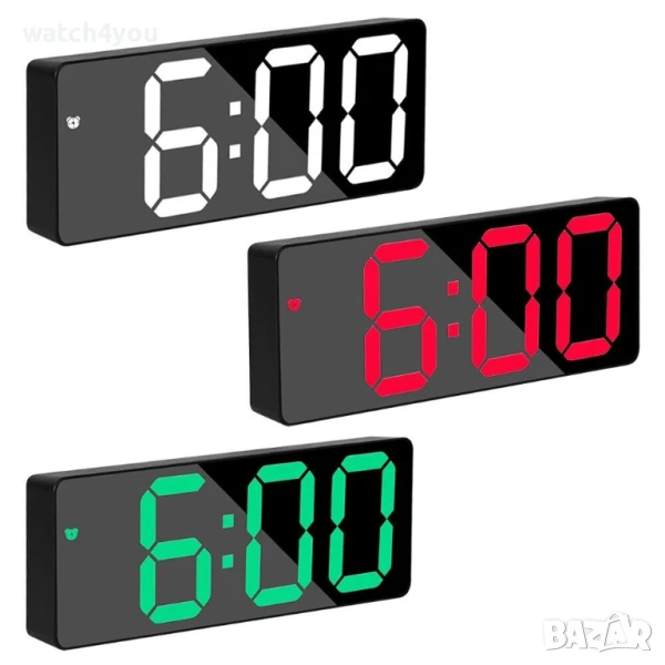 Модерен цифров LED часовник с голям дисплей, регулирате 2 нива на