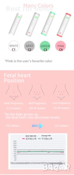 Уред за бебешки сърдечен ритъм bluеtooth Фетален доплер