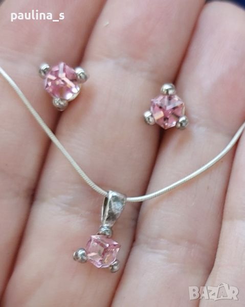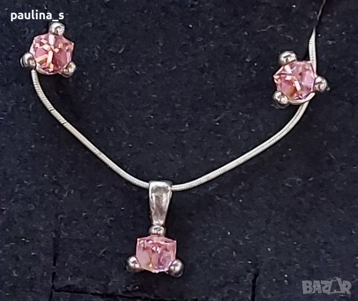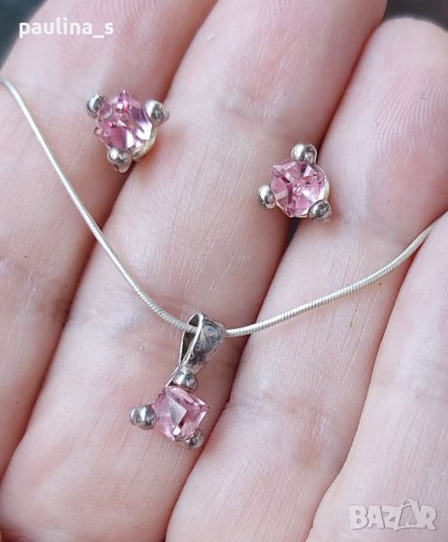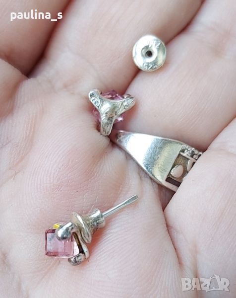 1. Комплект от маркови сребърни бижута - NU staff, с Кунцит, с двойна маркировка, с много красиво три точково фиксиране и съответната шлифовка. Цената е крайна 84,99лв. Камъните менятлеко цвета на светлината. Мащабирането е на дланта, цената не включва синджира. Прилагам и скрийншот за сверяване на цените на бижутата.