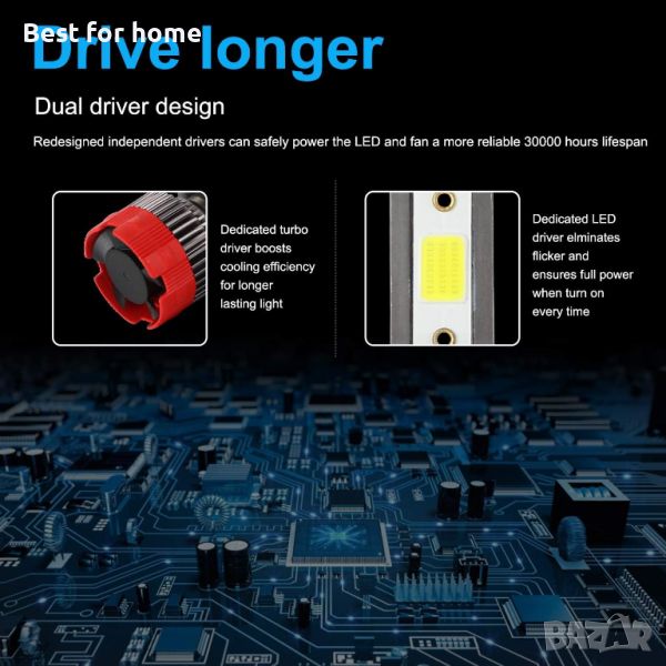 【Перфектно разсейване на топлината】 Уникалният дизайн на вентилатора с двоен сачмен лагер, комбиниран с 12 000 оборота в минута и двоен сгъваем радиатор с медно ядро, гарантира максимално разсейване на топлината и кара нашите фарове да светят до 30 000 часа. IP67 водоустойчив драйвер и конектори. Перфектно представяне при лошо време, като мъгла/дъжд/облачно време и др.