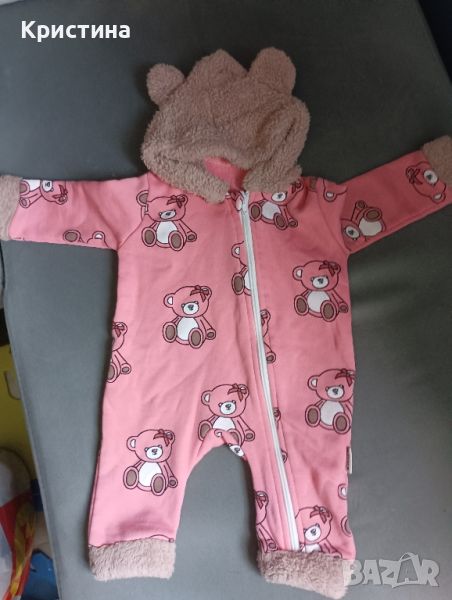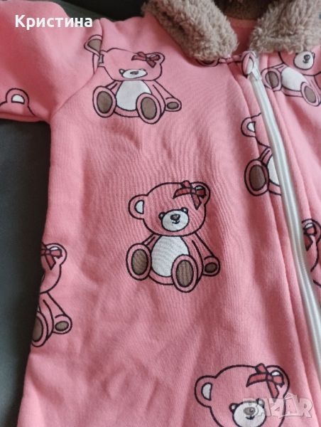 Бебешко зимно розово гащеризонче "мече" за момиче на мечета размер 6-9м. → Обява 46575882