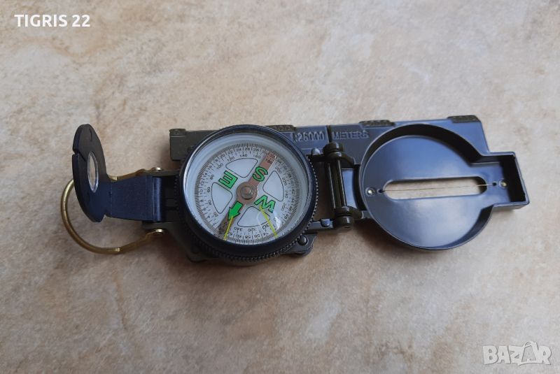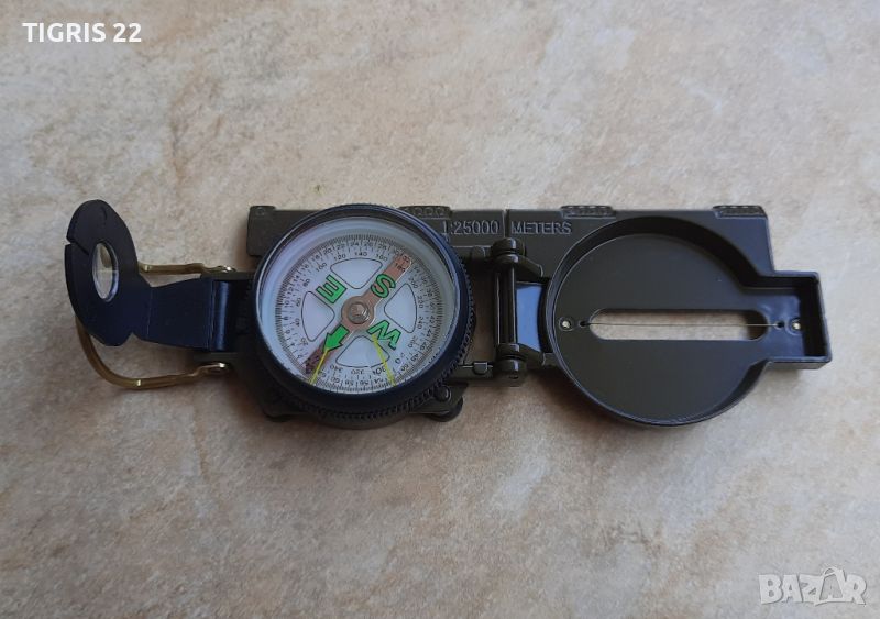 Компас - Чисто НОВ. Има всички необходими настройки за ориентиране. С типичния военен цвят. Достатъчно голям за нормално използване , и в същото време джобен формат. Доставката е за сметка на купувача и е със 10% отстъпка на Еконт.