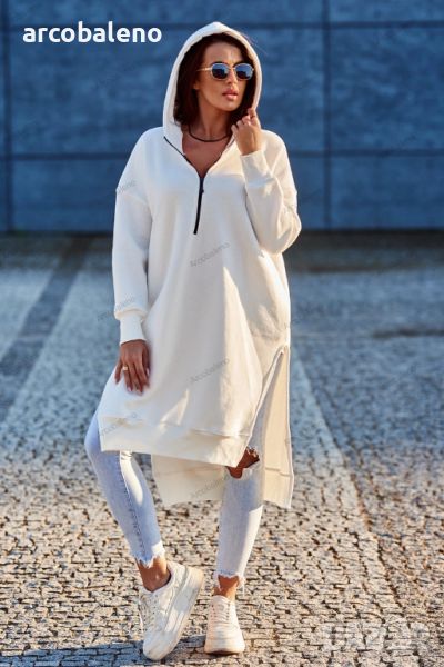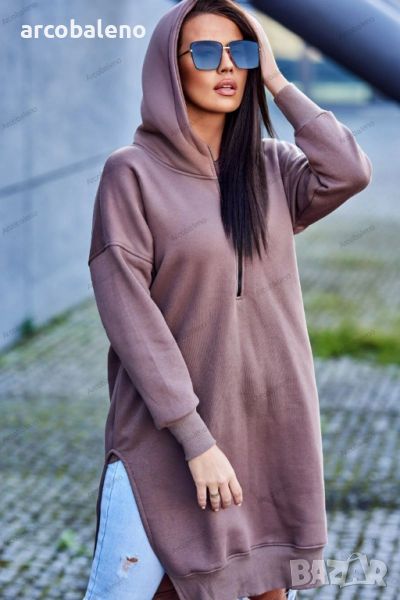 Моден дамски дълъг суичър с цепки отстрани, 14цвята