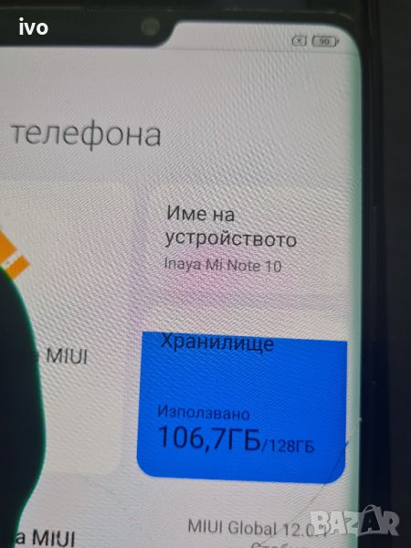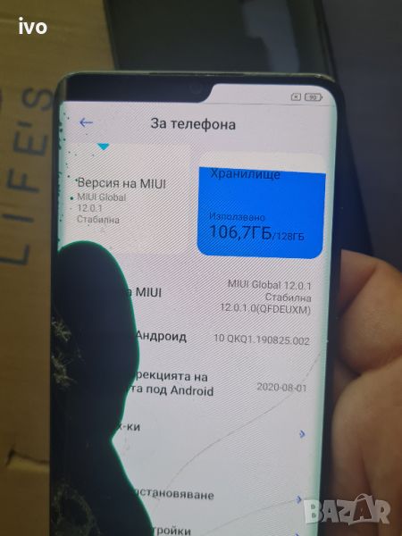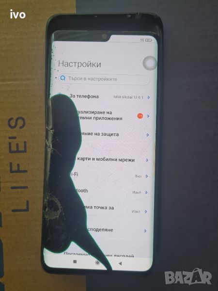xiaomi mi note 10 телефона е с пукнат дисплей но си работи.