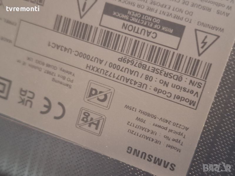 Power Supply Board BA43FA130 for Samsung UE43AU7172U for 43inc DISPLAY CY-BA043HGHY1V борда е гарантирано работещ Демонтиран от телевизор Samsung модел UE43AU7172U със счупен дисплей CY-BA043HGHY1V тествана от нашия техник Ремонт на всички марки съвременни телевизори