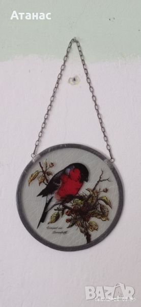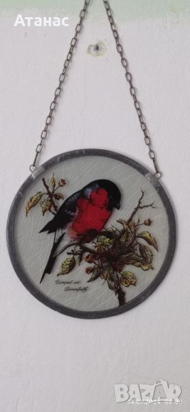 Стъклопис с изображение на птица.Диаметър 14 см.