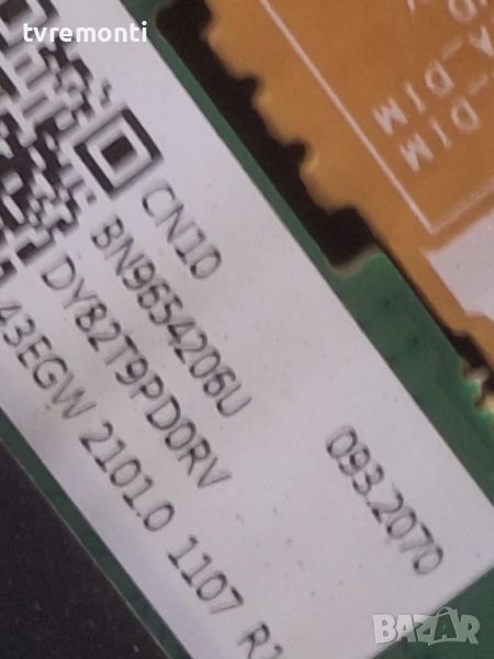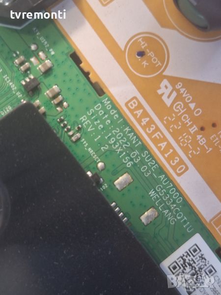 MAIN BOARDBN96-54206U KANT_SU2E_AU7000for Samsung UE43AU7172U for 43inc DISPLAY CY-BA043HGHY1V борда е гарантирано работещ Демонтиран от телевизор Samsung модел UE43AU7172U със счупен дисплей CY-BA043HGHY1V тествана от нашия техник Ремонт на всички марки съвременни телевизори