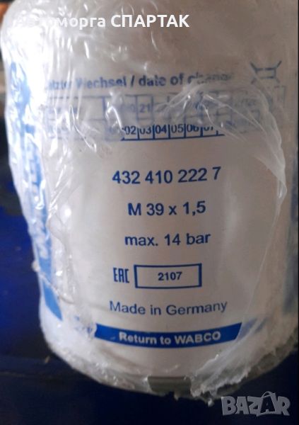 Филтър изсушител WABCO, 4324102227 за IVECO, DAF, EVOBUS, снимка 1 - Части - 46579514 Филтър изсушител WABCO, 4324102227 за IVECO, DAF, EVOBUS, снимка 2 - Части - 46579514 1/2