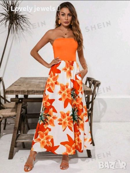 Красива лятна рокля на цветя в оранжево → Обява 46580349