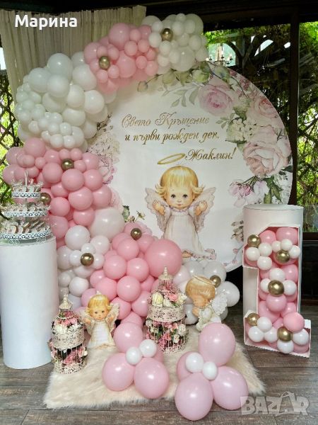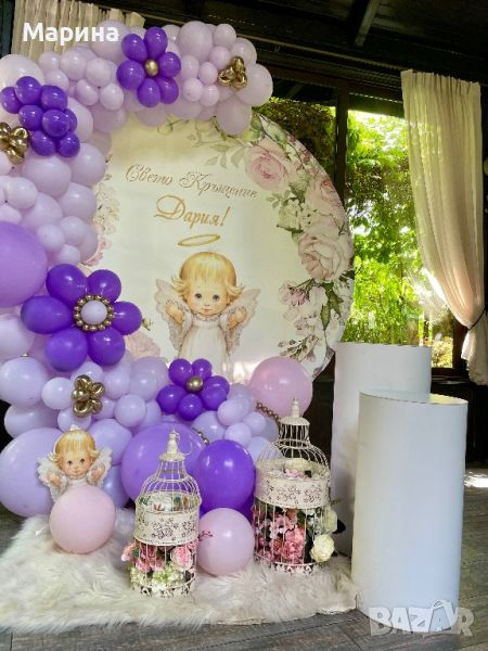 Украса с балони и арка за вашият повод(погача,кръщене,рожден ден,юбилей).Много голямо разнообразие от цветове и теми,различни декори.