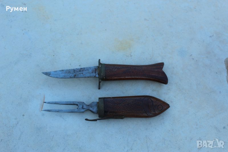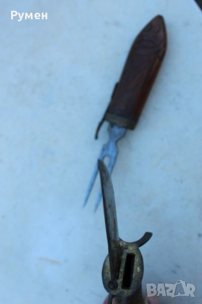 Ножа и двувърхната вилица влизат един в друг и имат бронзов захващащ механизъм.